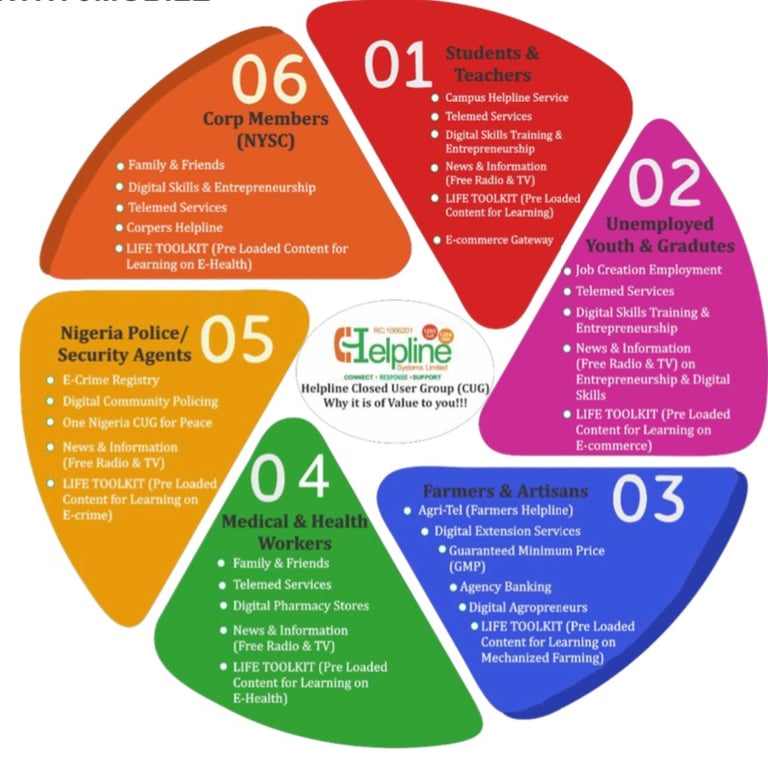 THE HELPLINE PROJECT, poised to take Value Added Service delivery to the Bottom of the Pyramid (BOP) Nigeria. We remain committed to our core-value statement: CONNECT; RESPONSE and SUPPORT. Proactive futuristic Community Security Services Delivery for a Safer, better inclusive Nigeria!!